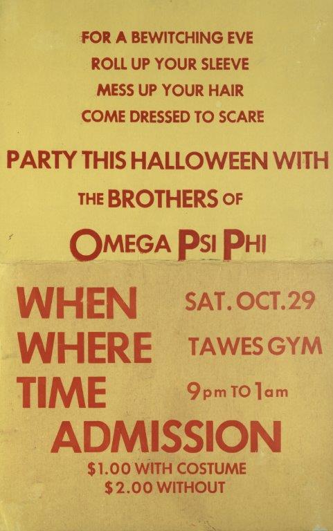 Poster advertising an Omega Psi Phi Fraternity Halloween Party