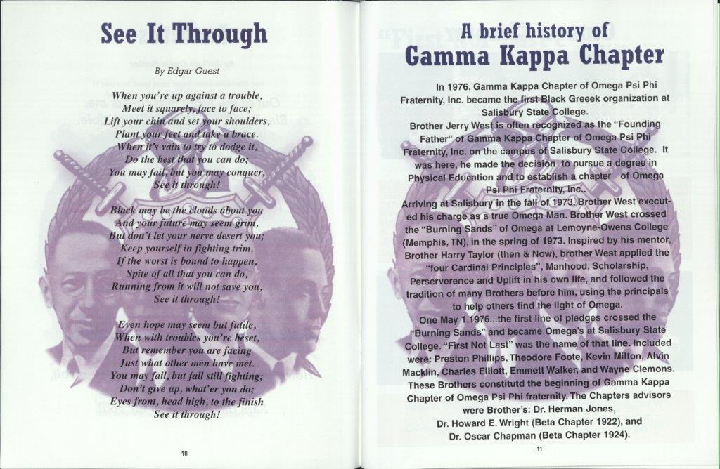 In 2016, the Gamma Kappa chapter of Omega Psi Phi celebrated its 40th Anniversary. In honor of this occasion they created a program recapping the legacy of the fraternity and the Salisbury University chapter.