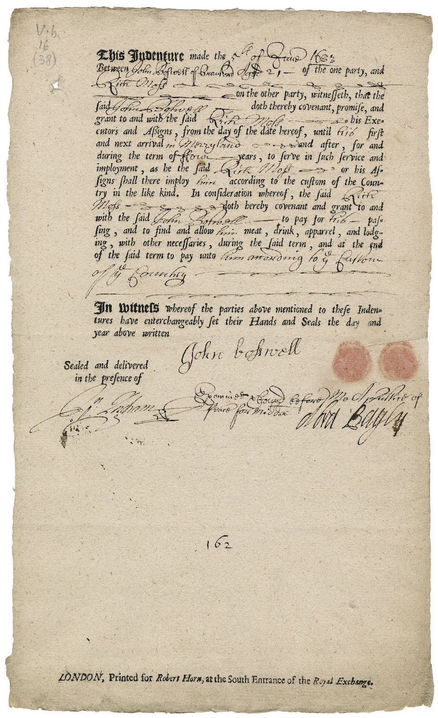 Indentured Servant contract for the colony of Maryland, June 5, 1683