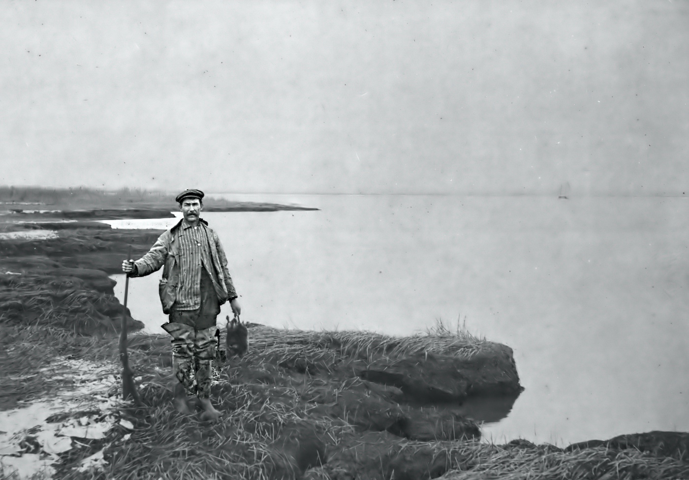 Josiah “Joseph” Collins Truitt holding a rifle and muskrats.