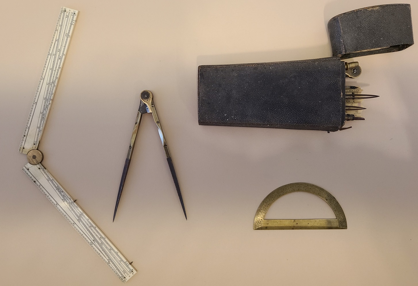 Map makers would have used drafting tools, like the ones displayed here, from the late 1700s to the early 1800s