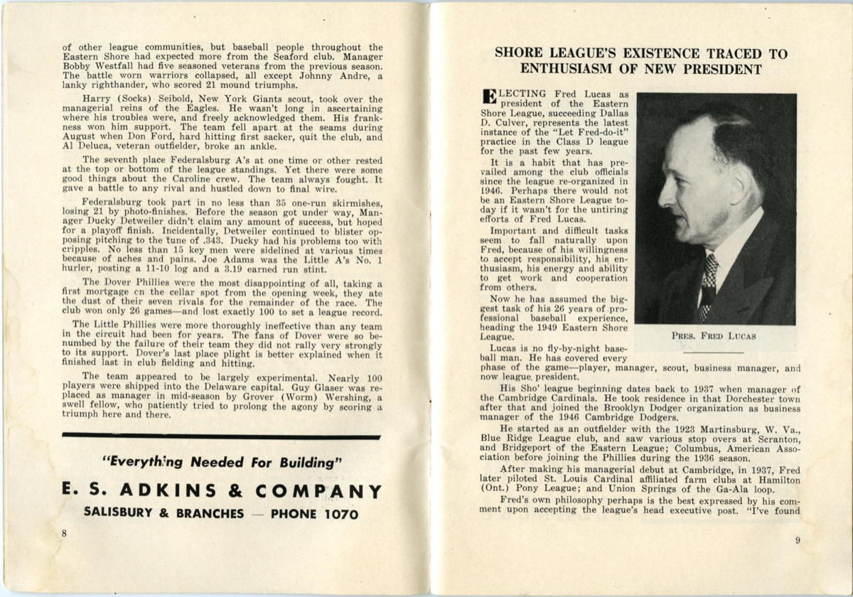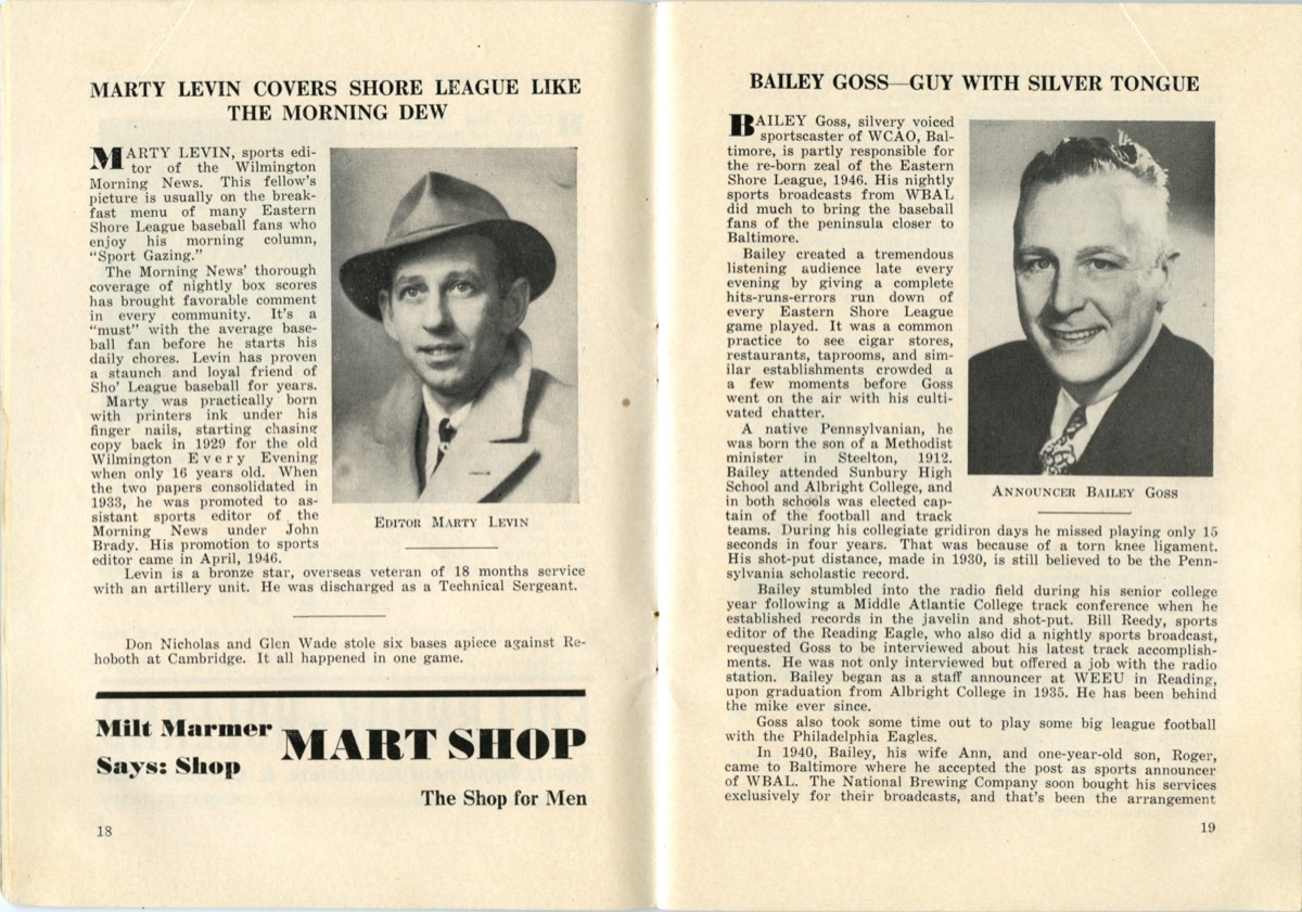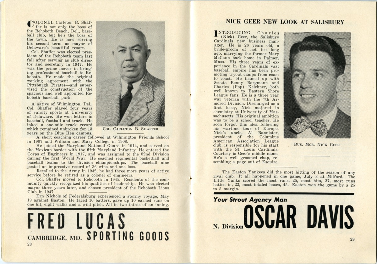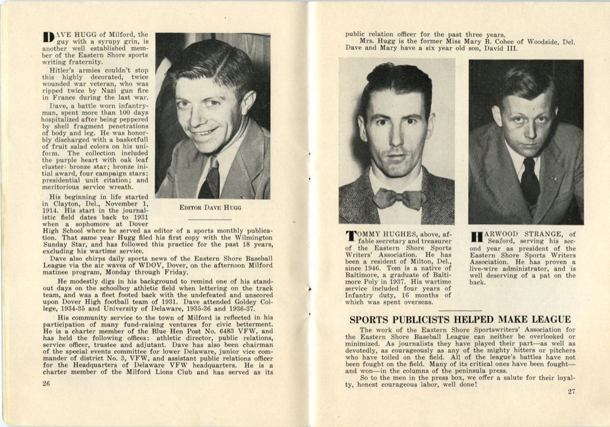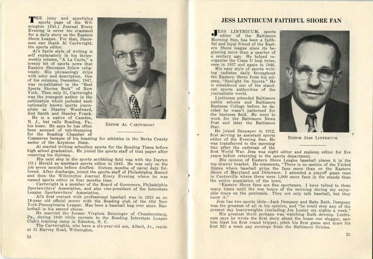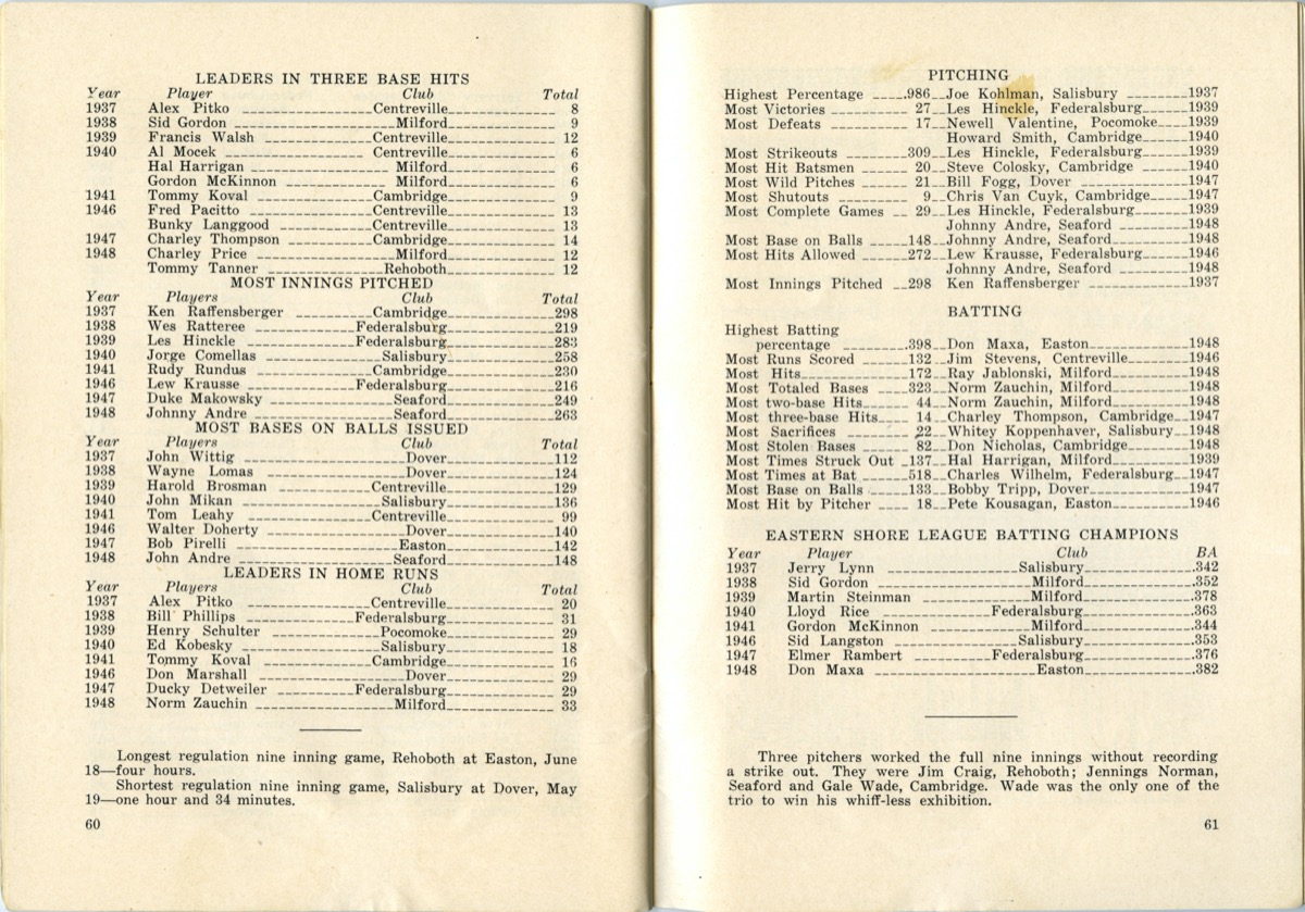 The Class D Eastern Shore League brought professional baseball to Delmarva over the course of three decades. Baseball was a community event that often included bands, parades, and double-headers. Men, women, and children looked forward to a day at the ballpark to root for their favorite team and players.