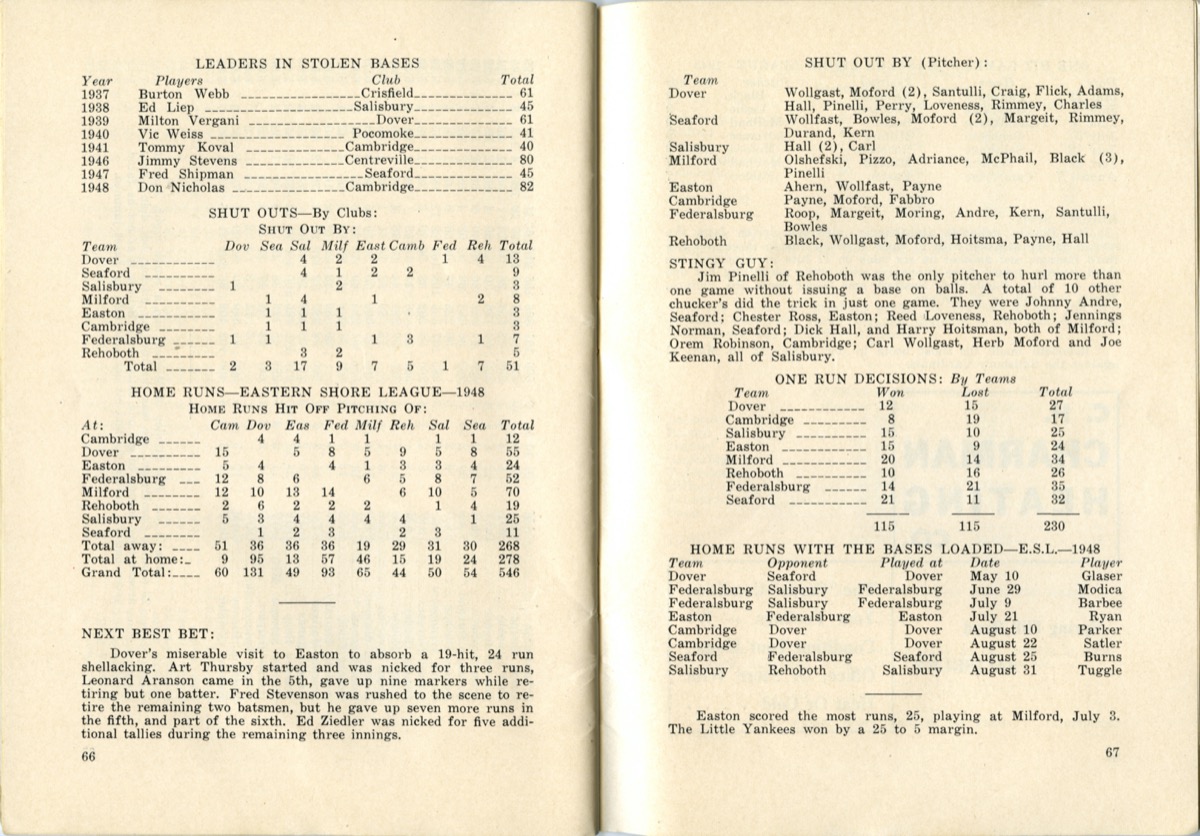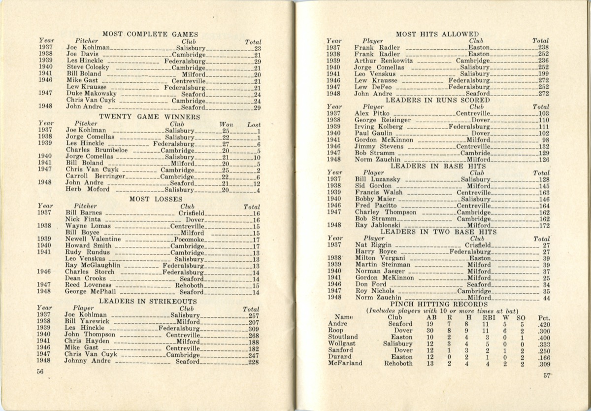 Click on the arrows to browse the Eastern Shore League Record Book, or click on the image below to enlarge.