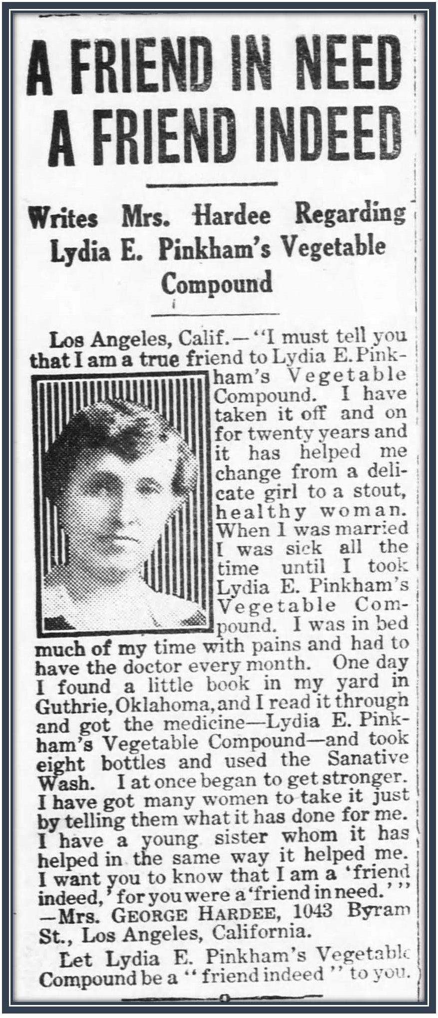 Advertisement for Lydia Pinkham's Vegetable Compound