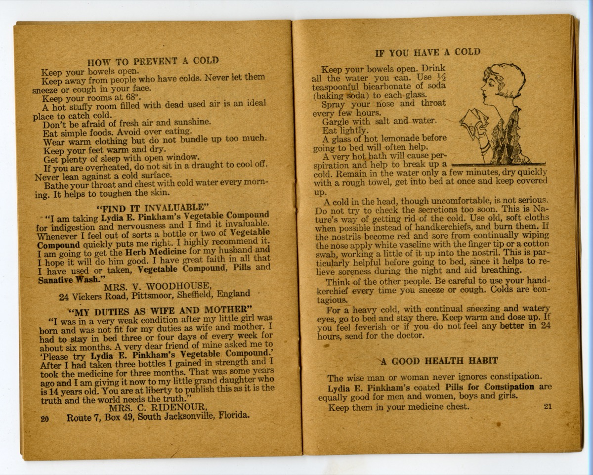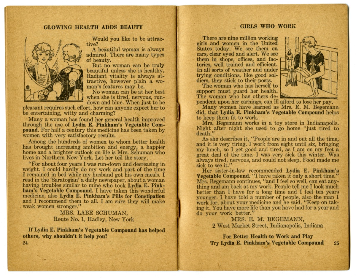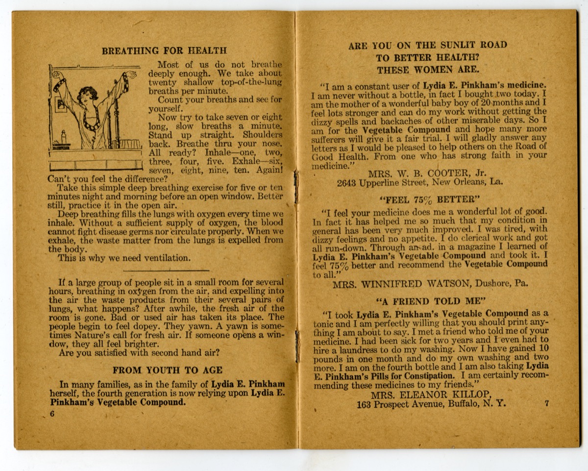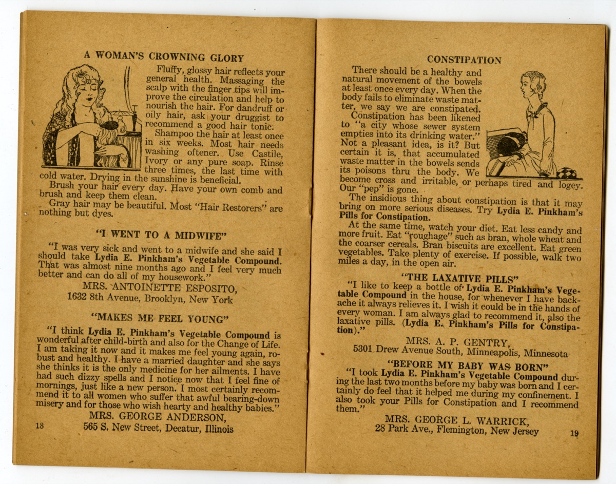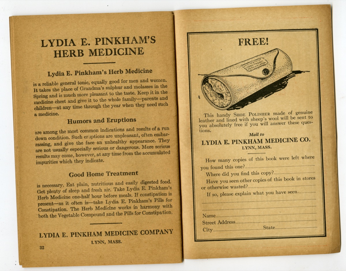 With limited financial backing, these women found creative ways to sell their products. Lydia Pinkham wrote and mailed booklets that offered advice to women. This “advice” almost always included the use of her products and the booklets included a convenient order form. These booklets were mailed to women across the country, including women in Delmarva.