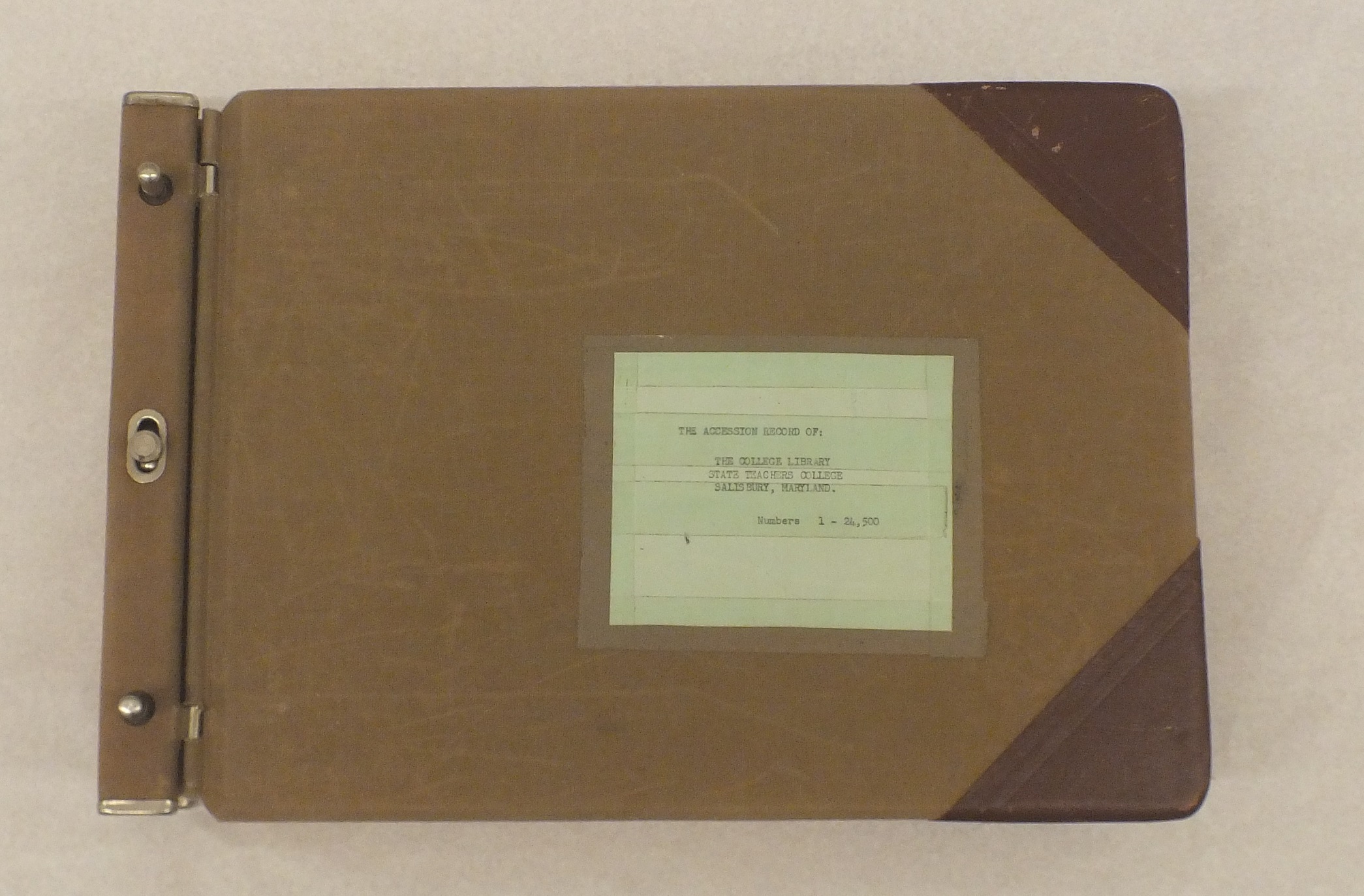 Salisbury University Libraries, “College Library Accession Ledger Cover, 1939-1952,” Nabb Research Center Online Exhibits, accessed December 14, 2025, http://www.sulibraries.org/nabb-online/items/show/229.