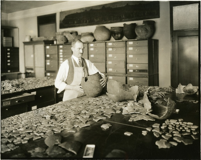 Neil Judd archaeologist reconstructing pottery shards from the Pueblo people.