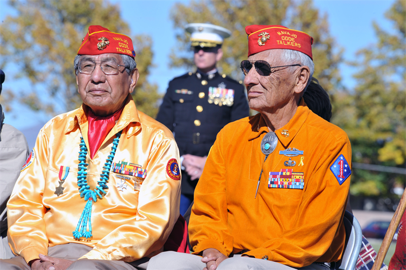 Navajo Code Talkers Peter Macdonald (left) and Roy Hawthorne participated in a ceremony Nov. 10, 2010, at Kirtland Air Force Base, N.M. to pay tribute to veterans and to celebrate Native American Heritage Month.