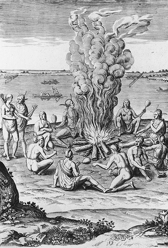 John White and Theodor de Bry , “Praying Around the Fire With Rattles,” Nabb Research Center Online Exhibits, accessed December 13, 2025, http://www.sulibraries.org/nabb-online/items/show/654.