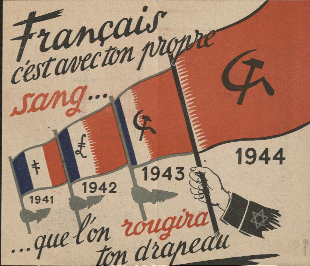 French anti-Communist leaflet that states: “It’s with your own blood that your flag will be colored red.”