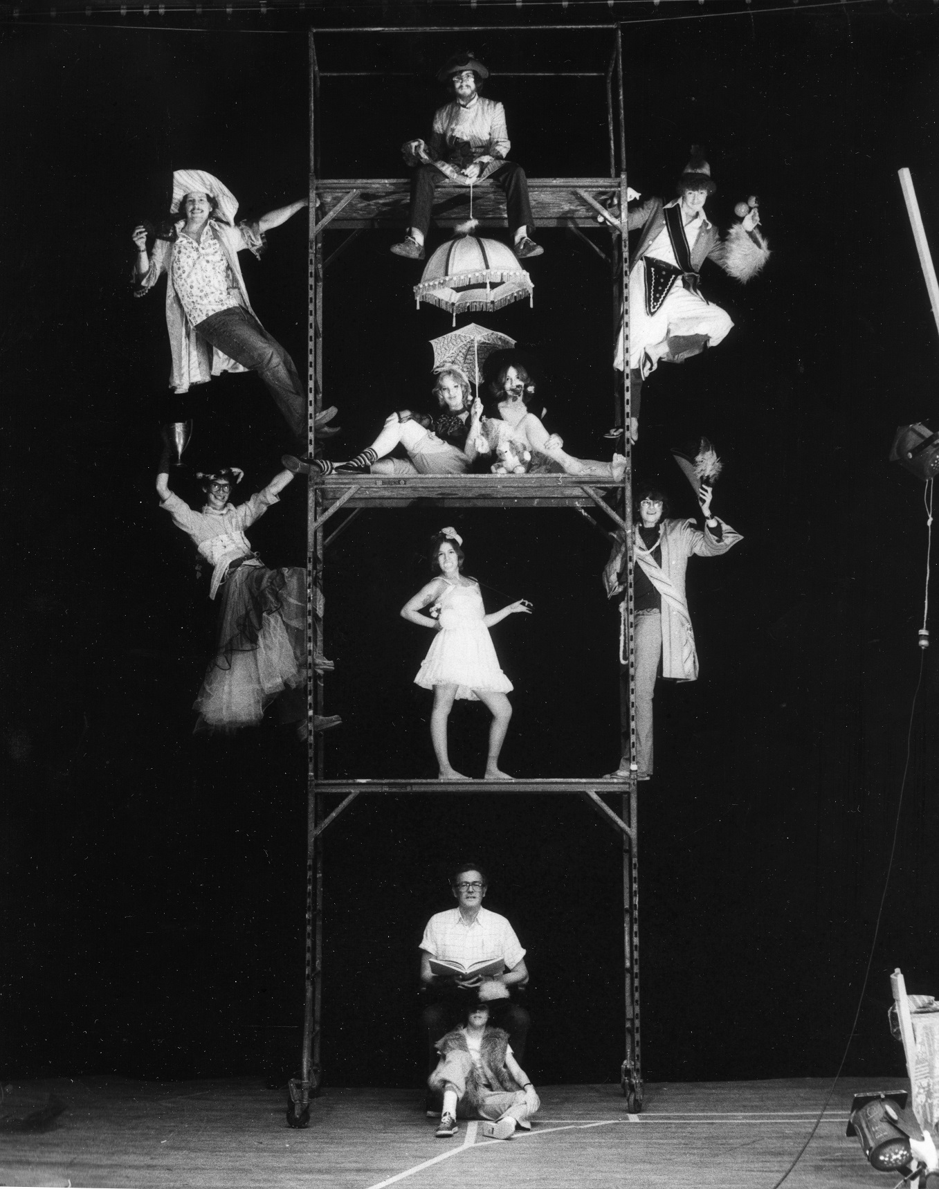 Salisbury State Theatre cast of The Late Christopher Bean, 1978. Pictured are Mike Goldsmith, Johnny Pettegrew, John Glassman, Gregory Tyler, Leland Starnes, Timothy Starnes, Jamie Russell, and Dawn Volkart