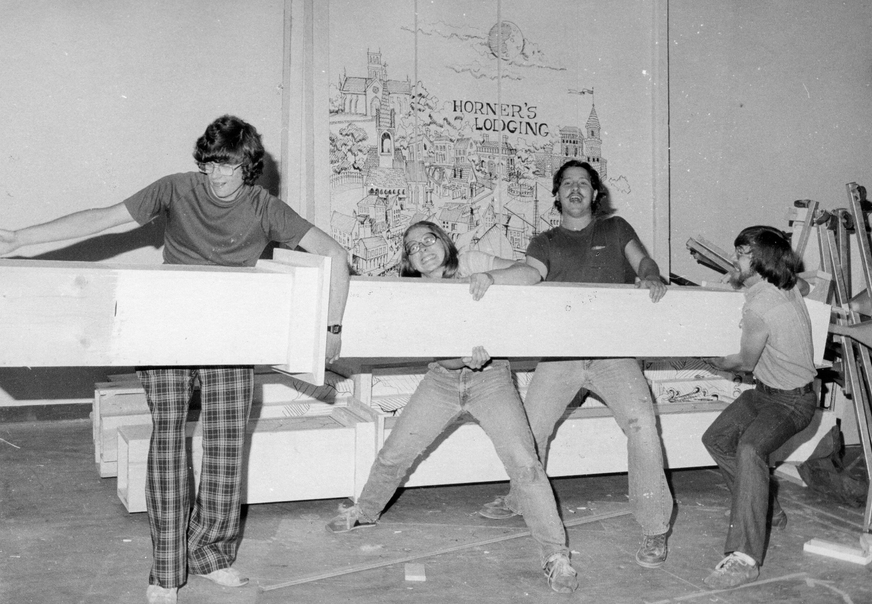 Backstage The Late Christopher Bean, July and August 1978. Pictured are Gregory Tyler, Lori Besti, Mike Goldsmith, and Johnny Pettegrew.