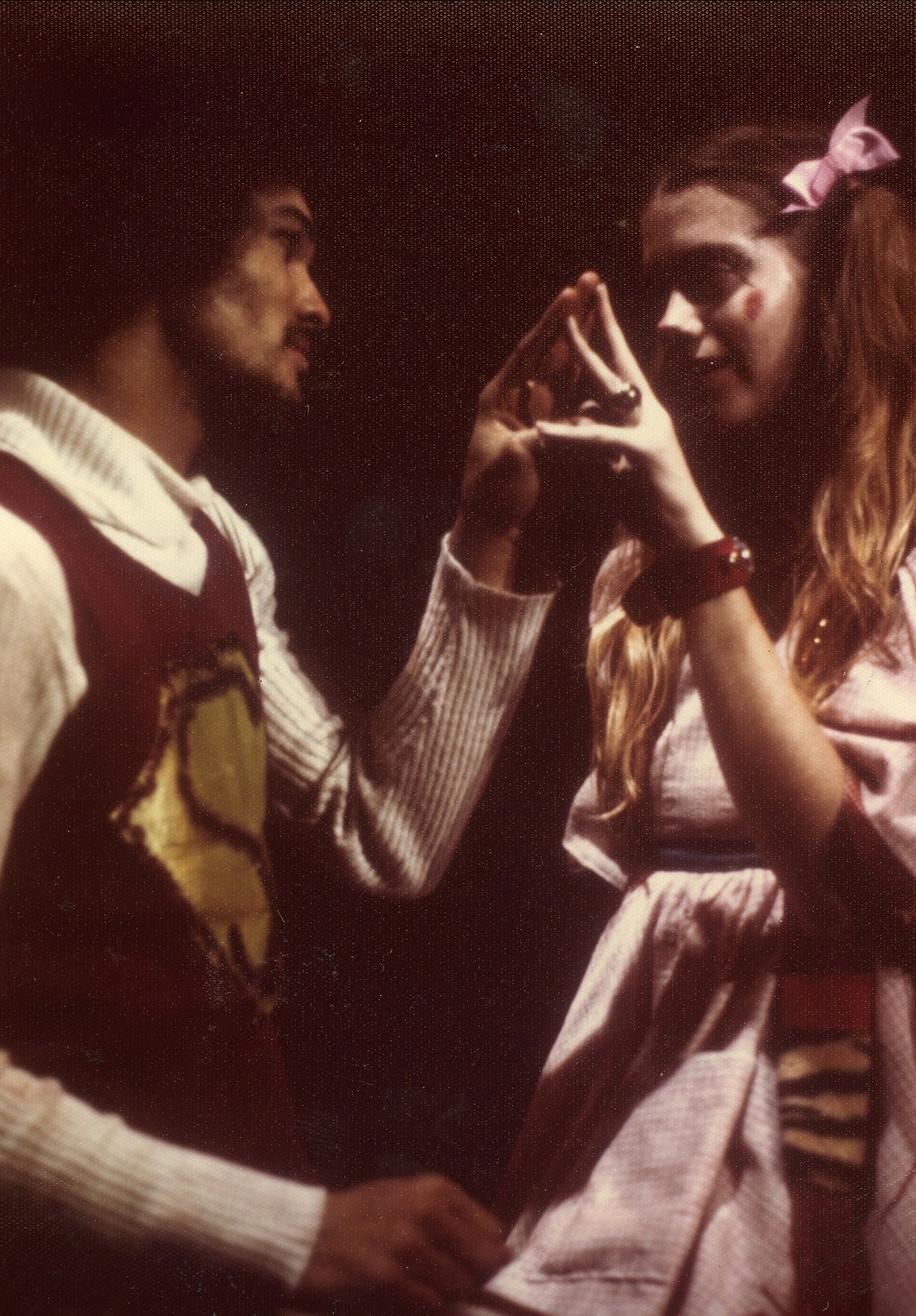 Scene from the Salisbury State Theatre performance of Godspell, November 1975. Pictured are James Foley and Kathy Peters
