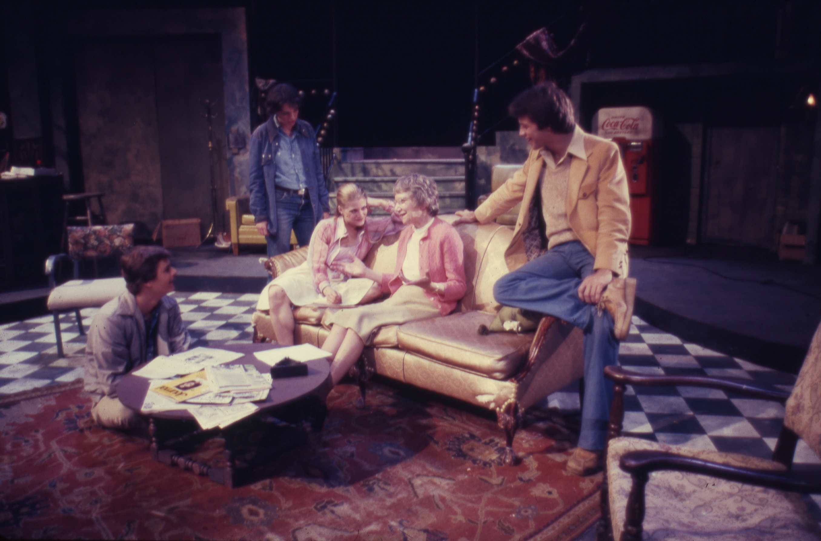Scene from the Salisbury State Theatre performance of The Hot L Baltimore, July 1976. Pictured are Jane Ferguson, Cathe Adkins, Francis Fleming, John Wagner, and Gary Weber.