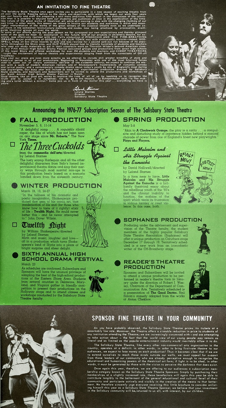 Salisbury State Theatre, “Salisbury State Theatre Subscription Flyer, 1976-1977,” Nabb Research Center Online Exhibits, accessed December 14, 2025, http://www.sulibraries.org/nabb-online/items/show/186.