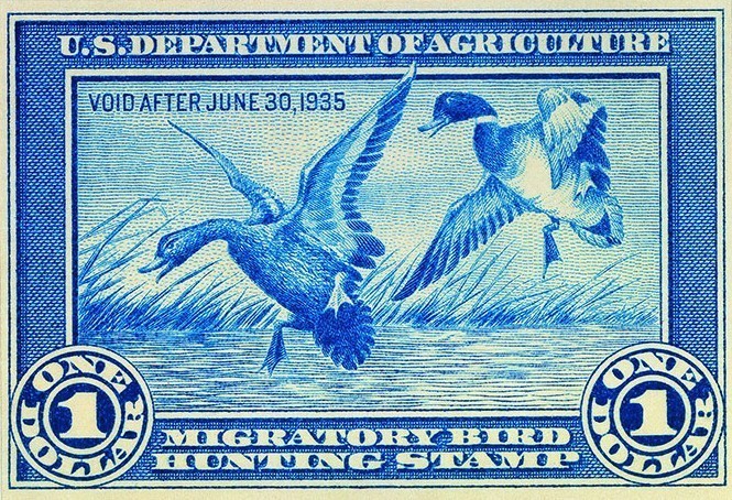The first United States duck stamp used to monitor and regulate the hunting of migratory waterfowl
