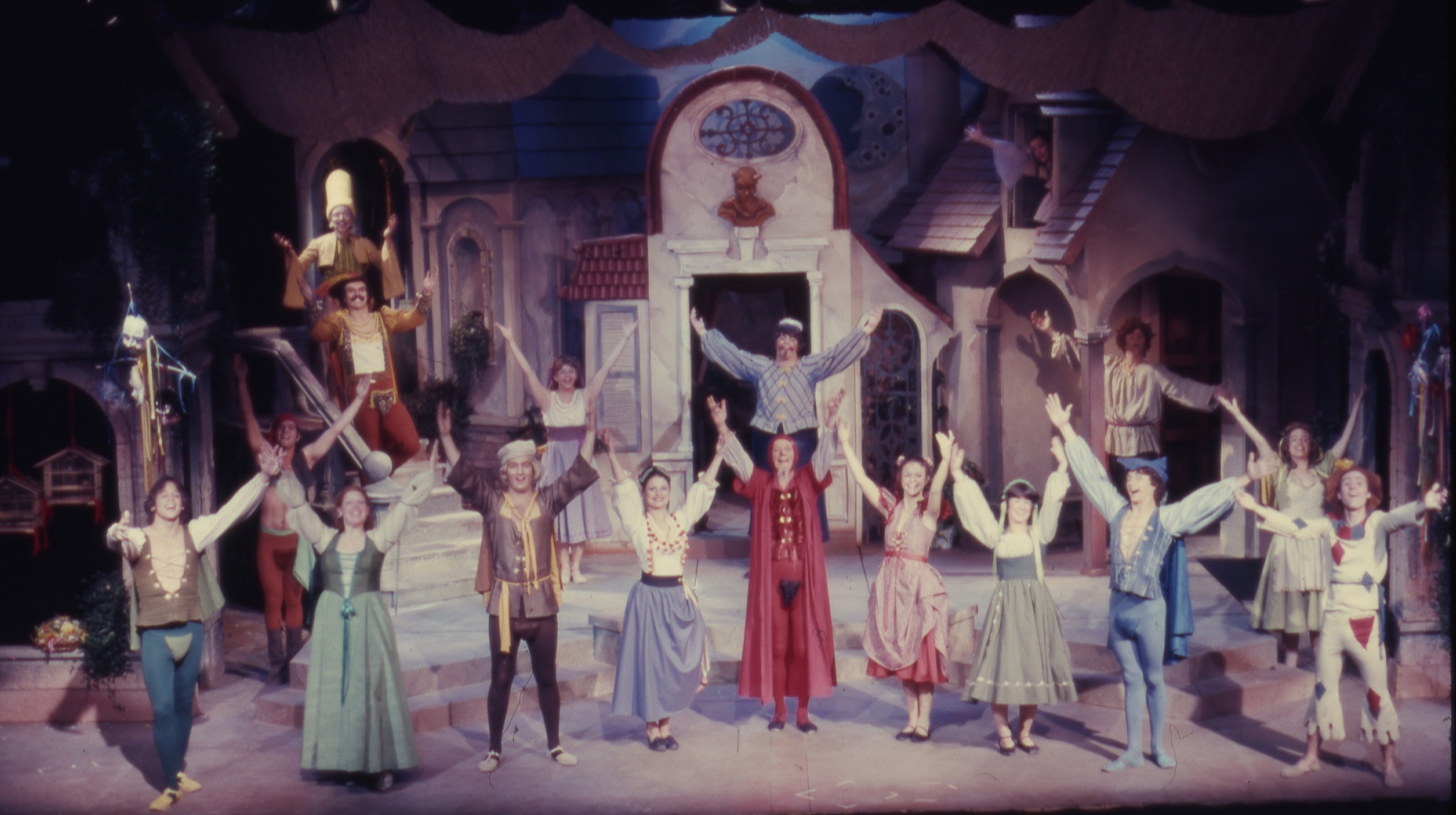 Cast and set from the Salisbury State Theatre performance of The Three Cuckolds, November 1976.