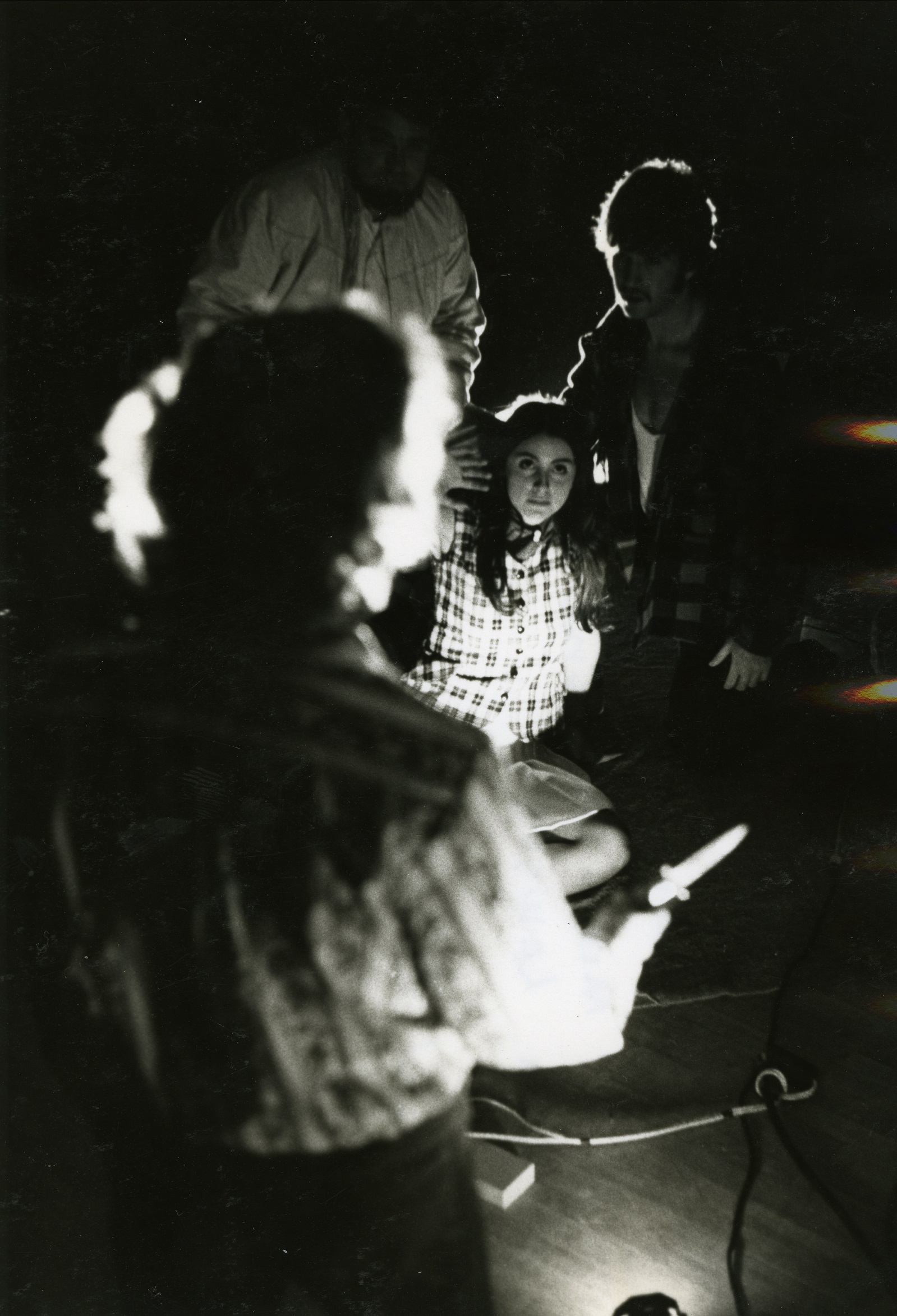 Scene from the Salisbury State Theatre performance of Wait Until Dark, November 1973. Pictured are Dixon Gurley, Mike Williams, Lisa Lawson, Paul Pfeiffer