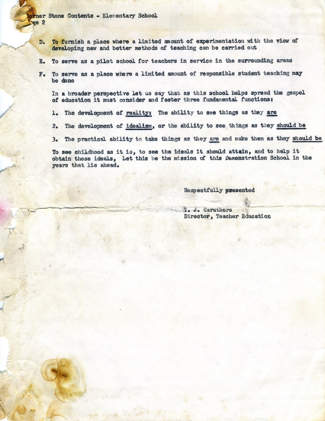Campus Elementary School cornerstone contents list (page 2), 1954