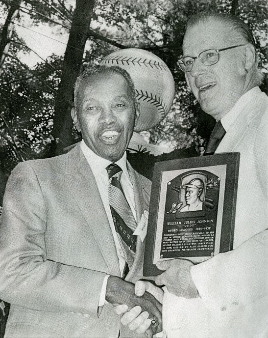Photograph of Judy Johnson being inducted into the National Baseball Hall of Fame, 1975, Courtesy of the