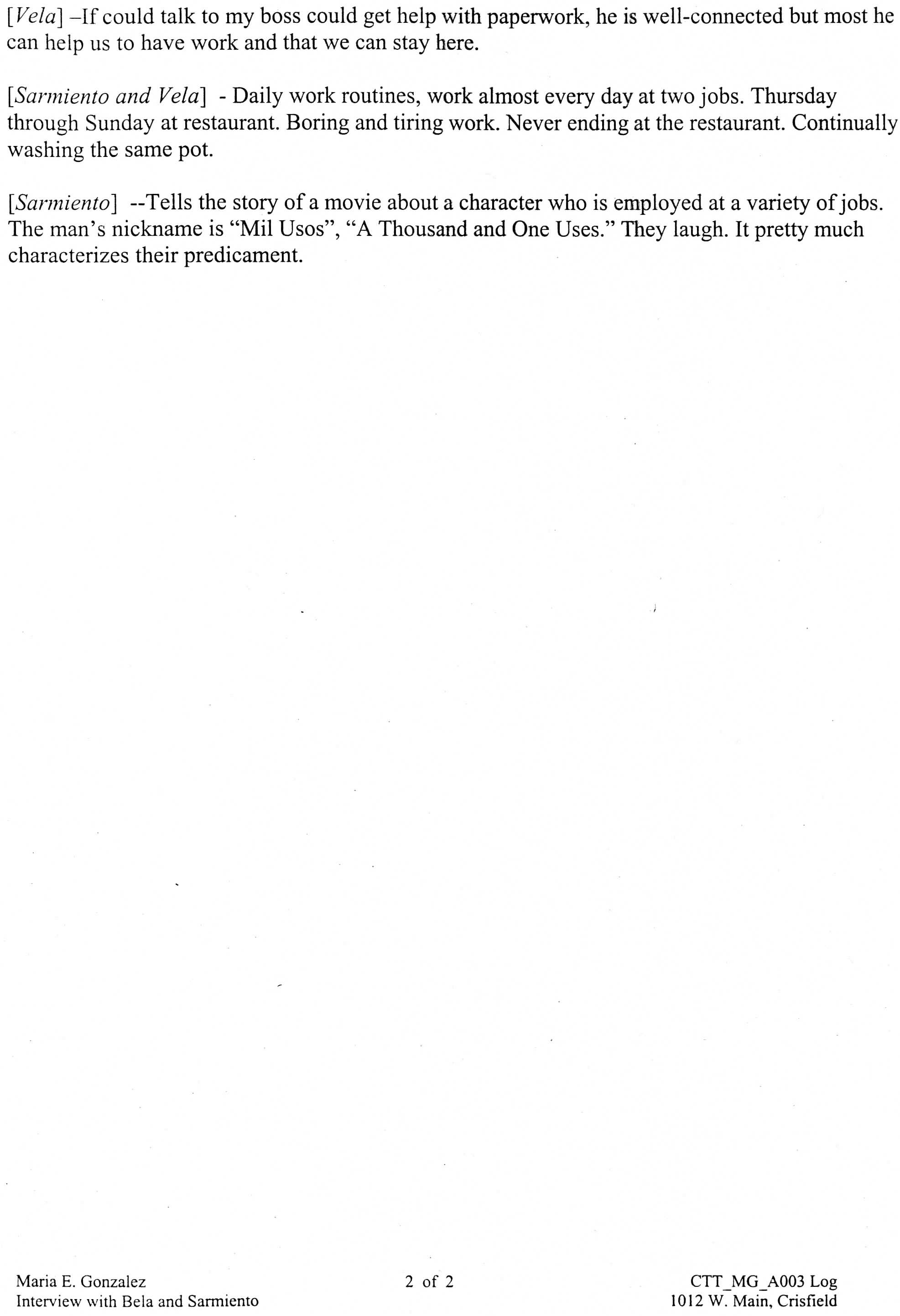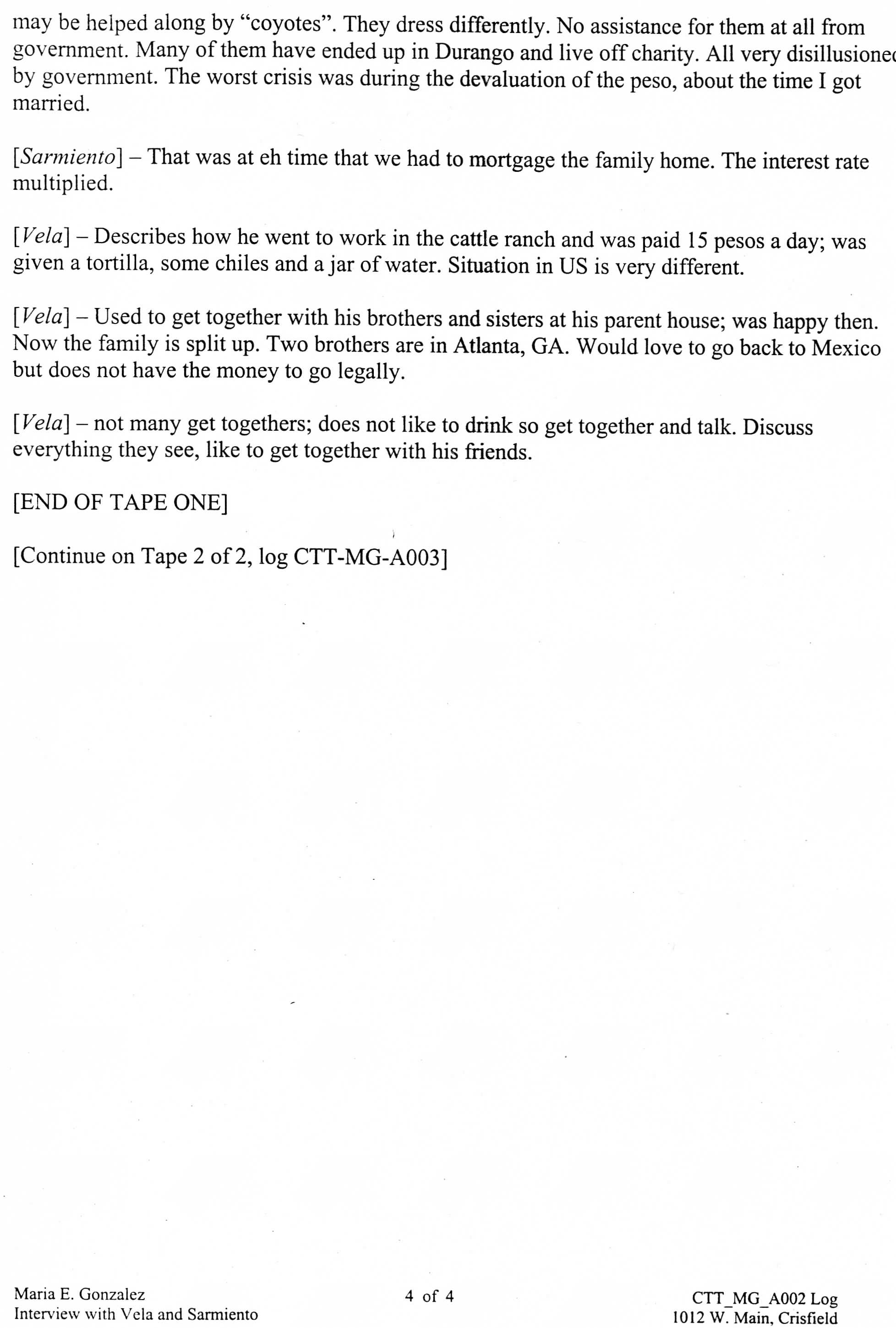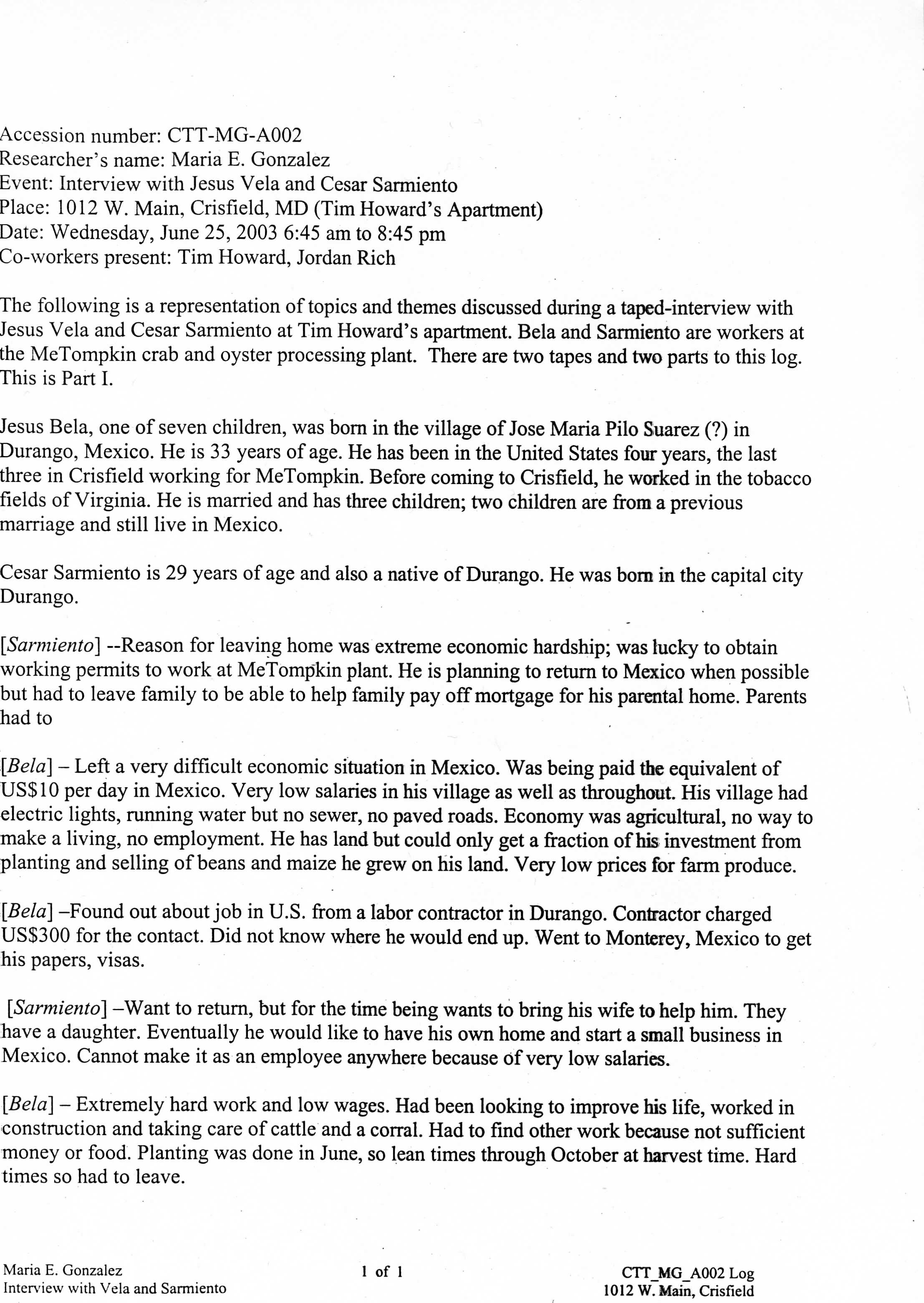 Interviewer - Maria E. Gonzalez, “Interview Log Jesus Vela and Cesar Sarmiento,” Nabb Research Center Online Exhibits, accessed December 13, 2025, http://www.sulibraries.org/nabb-online/items/show/578.