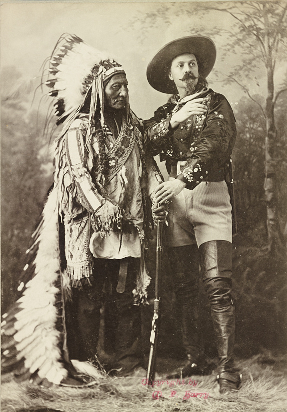 Photograph of Buffalo Bill standing next to Sitting Bull