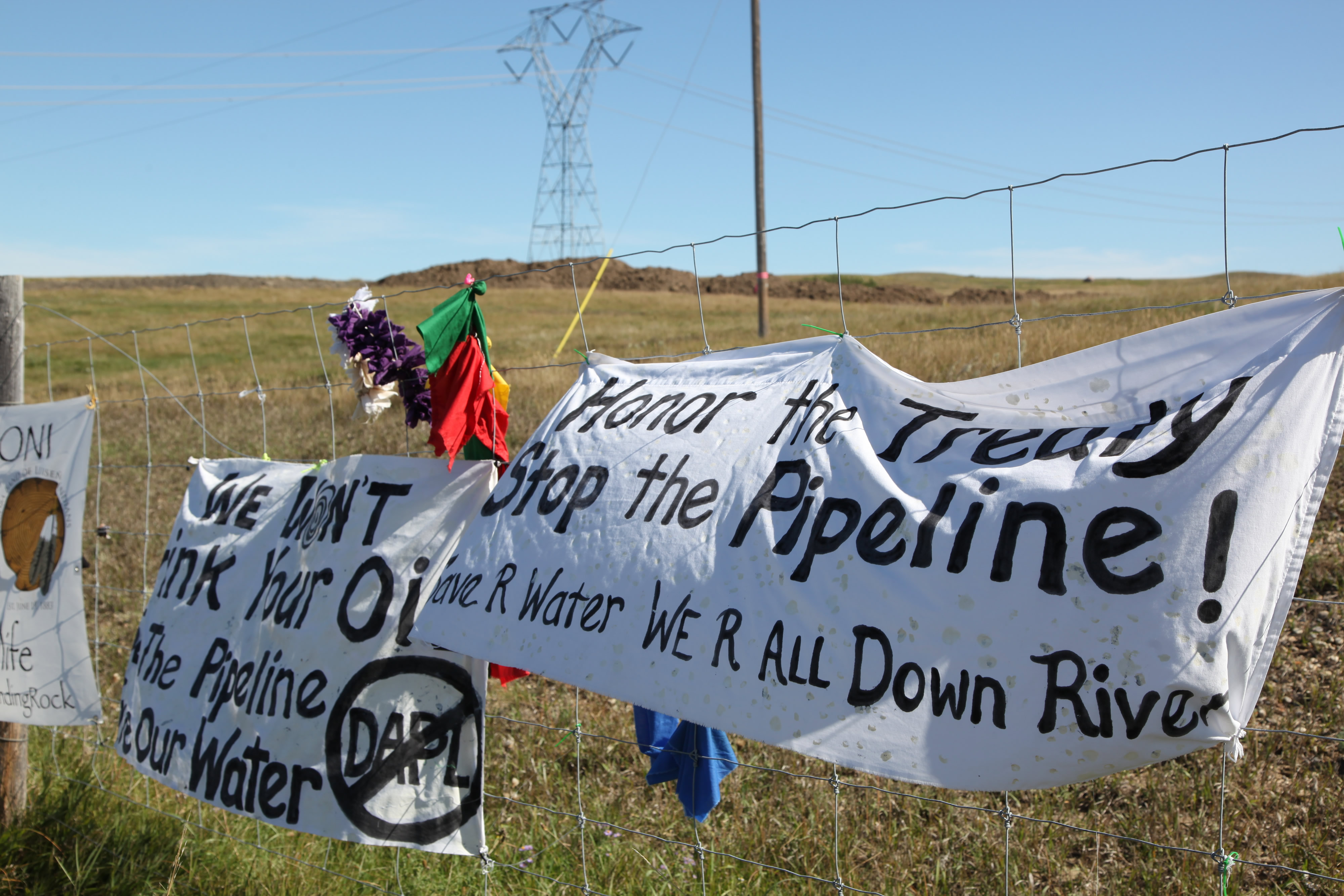 Format is a Photograph of the signs displayed by Water Protectors at the NoDAPL Protests